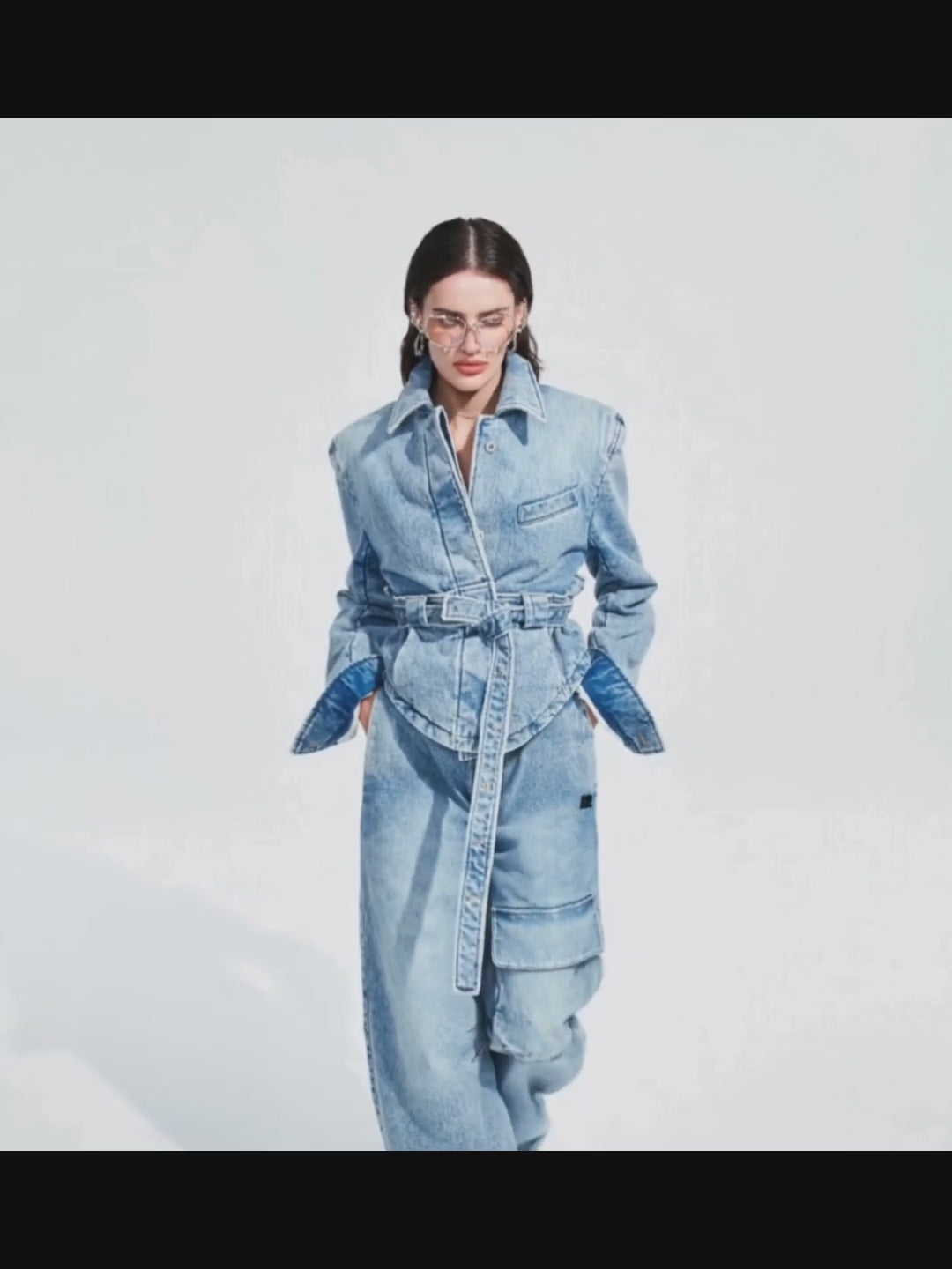 Commuting casual lapel long sleeve tie duster pocket embellished denim dress